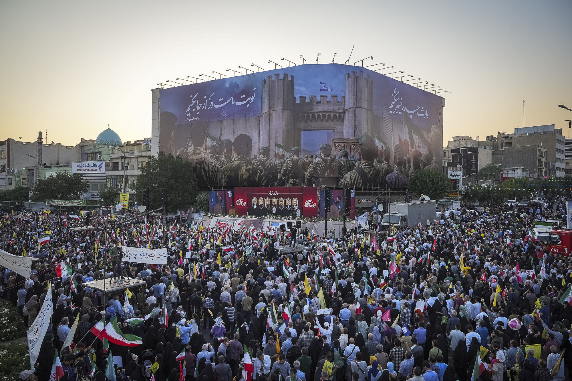 The public gathering "Iran; Zulfiqar of Ali" began in Tehran, simultaneously with the rest of the country. During the ceremony, participants emphasized unity against the enemy and demanded a crushing response to the Zionist regime.