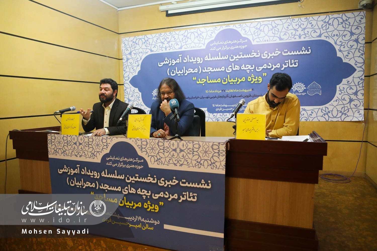 مدیر مرکز هنر‌های نمایشی حوزه هنری در نشست خبری با اعلام اینکه هدف تئاتر مردمی بچه‌های مسجد کشف استعداد‌های علاقه‌مند، نوجوان و جوان در سطح کشور است، گفت: سال‌هاست در تئاتر ایران شعار «تئاتر برای همه» را می‌دهند، ولی عملی نشده و تئاتر برای همه نیست و فقط به قشر خاصی تعلق دارد.