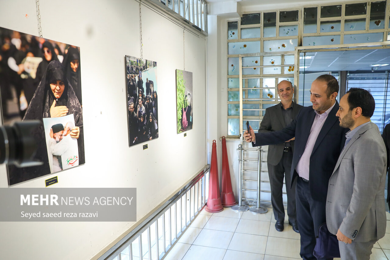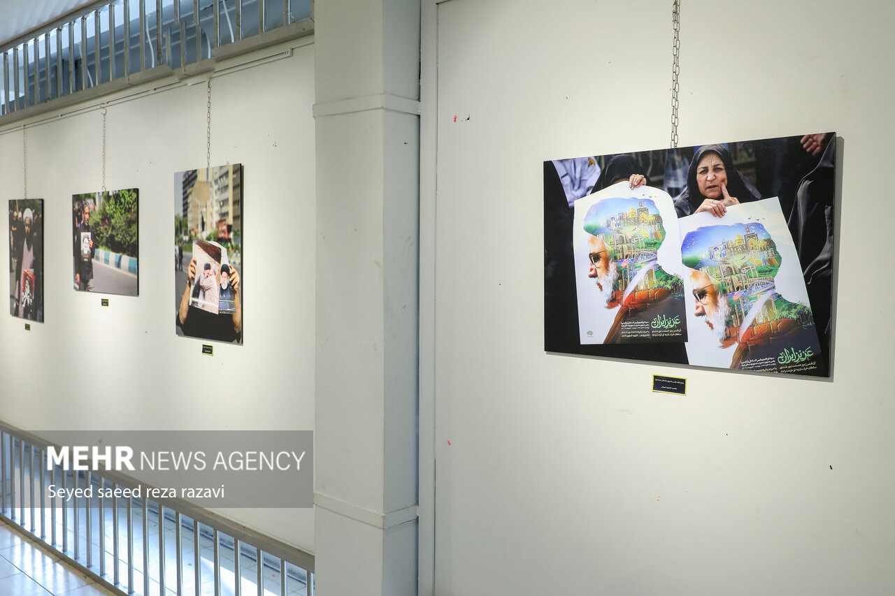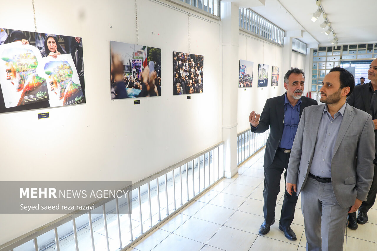 نمایشگاه عکاسی تشییع خادمان حرم ایران بعدازظهر امروز یکشنبه ۲۸ اردیبهشت ماه ۱۴۰۴ در دانشگاه سوره افتتاح شد. عکس: سید سعیدرضا رضوی