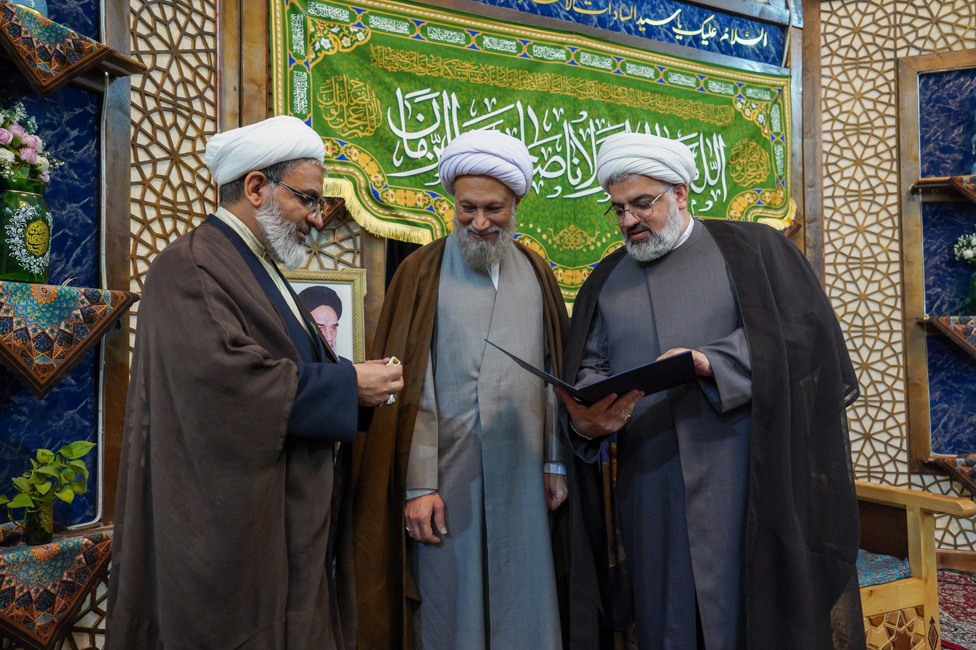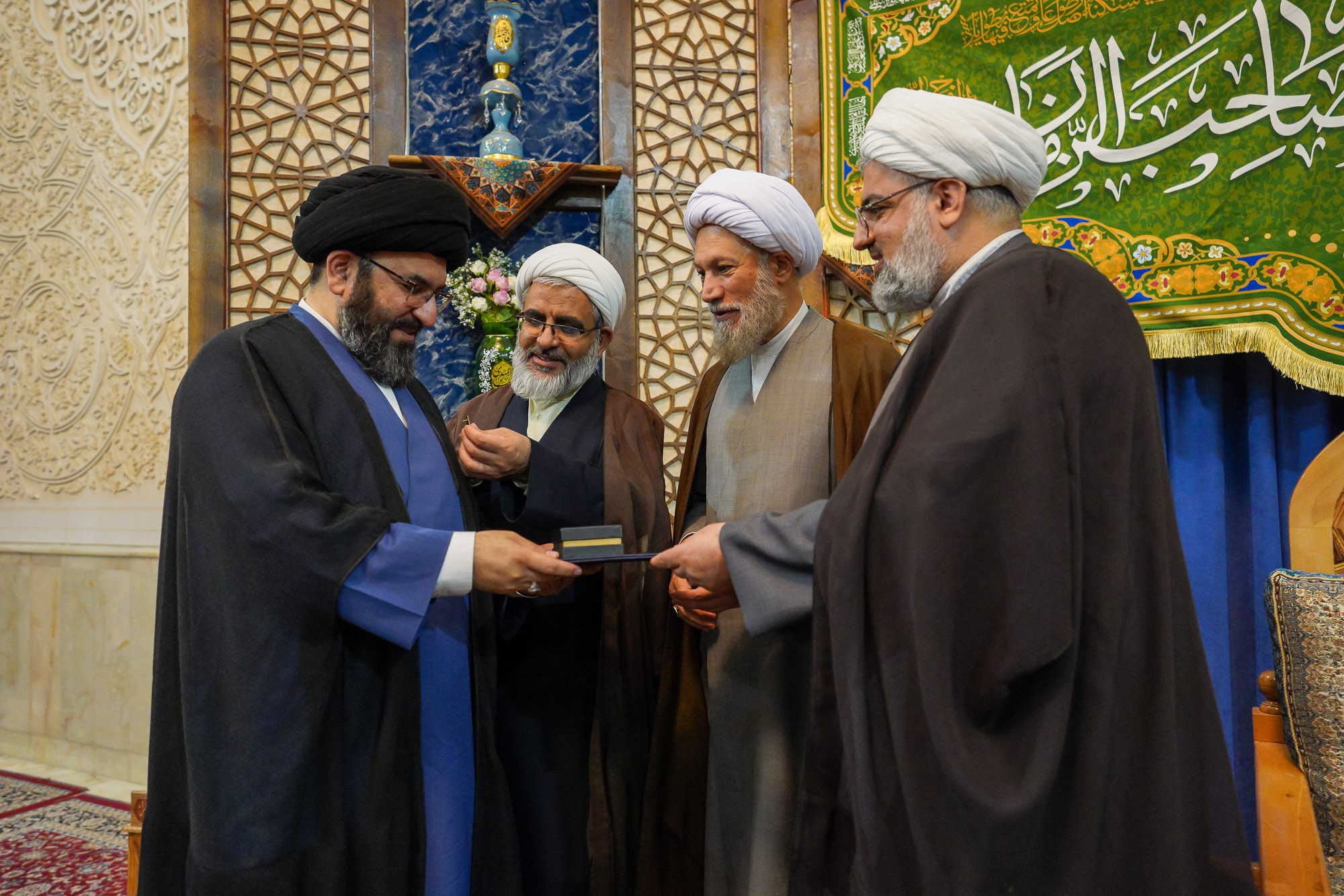 در پایان، نشان خادمی آستان مقدس حضرت احمدبن موسی(ع) بر دوش حجتالاسلام والمسلمین حسینی نشست؛ نشانی از افتخار خدمت در بارگاه برادری از تبار موسیبنجعفر (ع).