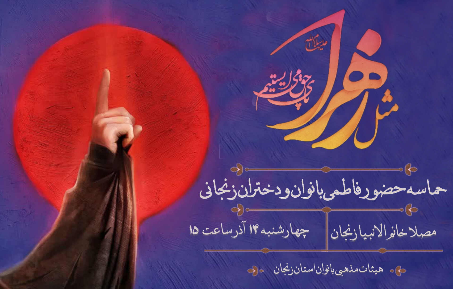 مدیرکل تبلیغات اسلامی زنجان از برگزاری اجتماع حماسی بانوان زنجانی«مثل زهرا(س)» طی روز چهارشنبه در مصلی از ساعت ۱۵ تا ۱۷ به مناسبت شهادت حضرت فاطمه (س) خبر داد.